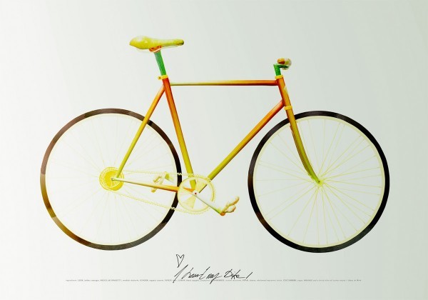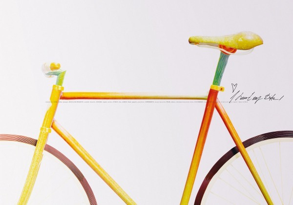 Photographer Fabian Orhn and art director Joakim Hedblad combined forces to create a fixed gear bike that is completely edible. From far away the bicycle creation appears to be made of typical materials like aluminum and steel but an up close view shows that it is quite far from ordinary. The bike’s mechanics are composed of vegetables, fruits, and other foods sculpted together with various substances like thick syrup holding it together like glue. The result is a truly unique creation consisting of 100% comestible ingredients. So, what’s for dinner you ask? A sweet bike indeed. [via trendland]